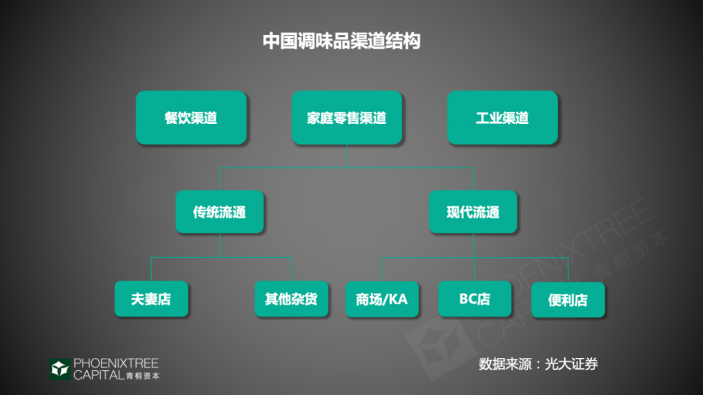 調(diào)味品渠道為王,其分銷渠道主要有3種:餐飲渠道、家庭渠道、工業(yè)渠道。和其他快消品不同的是,B端是調(diào)味品最大需求端。