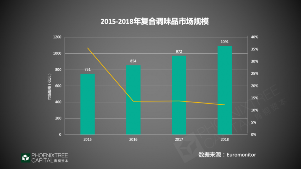 復(fù)合調(diào)味品市場集中度低,增速較快,極具成長性,據(jù)Euromonitor,2018年我國復(fù)合調(diào)味品市場規(guī)模為1091億元,2013-2018年復(fù)合增速高達14.4%,預(yù)計2020年將達1488億元。作為創(chuàng)業(yè)公司集中的賽道,火鍋調(diào)味品、中式復(fù)合調(diào)味品這2大品類更具發(fā)展?jié)摿Α?/span>