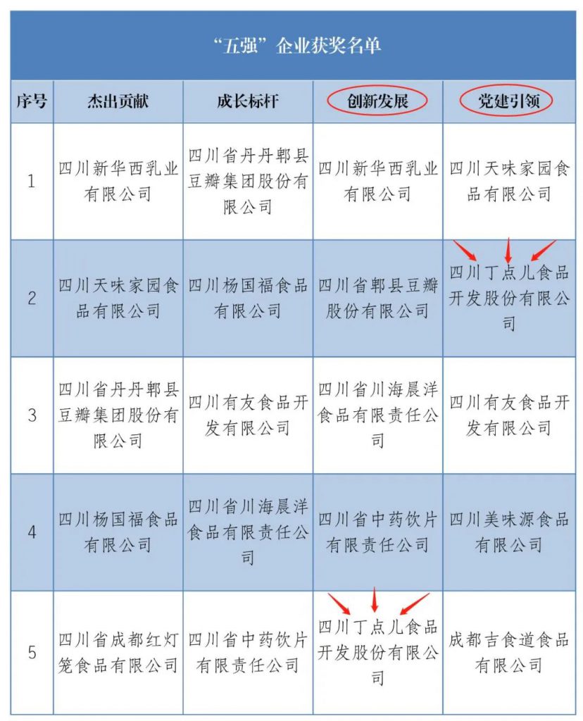 ? ? ? ? 作為園區(qū)標桿企業(yè),丁點兒股份獲評創(chuàng)新發(fā)展“五強”企業(yè)和黨建引領(lǐng)“五強”支部雙項榮譽,董事長任康榮獲招商引智“五好”個人稱號。這是郫都區(qū)川菜產(chǎn)業(yè)城管理委員會對丁點兒股份的高度認同及期望。
