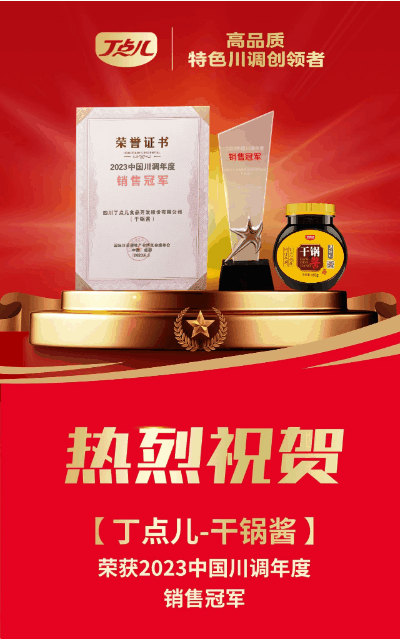 丁點兒干鍋醬、椒麻雞汁、藤椒油、麻得倒紅花椒油、老壇酸菜醬等產(chǎn)品更是在“中國川調(diào)之夜”大放異彩,獲得了品類銷售冠軍、品類十大創(chuàng)新產(chǎn)品、品類十大影響力品牌等多個獎項。